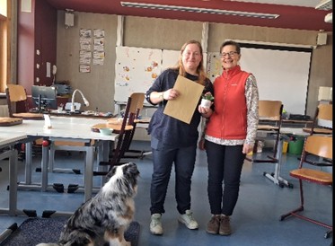 Nach zwei arbeitsintensiven Jahren konnte Stella bereits im Oktober 2025 die Eignungsprüfung für den pädagogischen Begleithund bestehen und jetzt endlich das Zertifikat durch Edith Blechschmidt (Hundetrainerin) überreicht werden. Mit einer kleinen Feier dankte Frau Pohl (Jugendsozialarbeit) den Kindern und Jugendlichen, ohne die das alles so gar nicht möglich gewesen wäre.