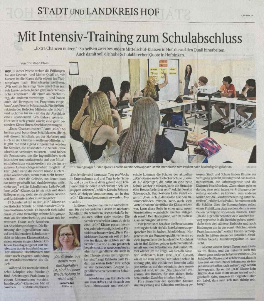 Der BR berichtete am 16.03.2025 in der Frankenschau über die eCn-Klassen in Hof.